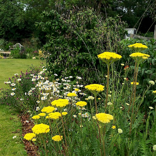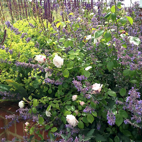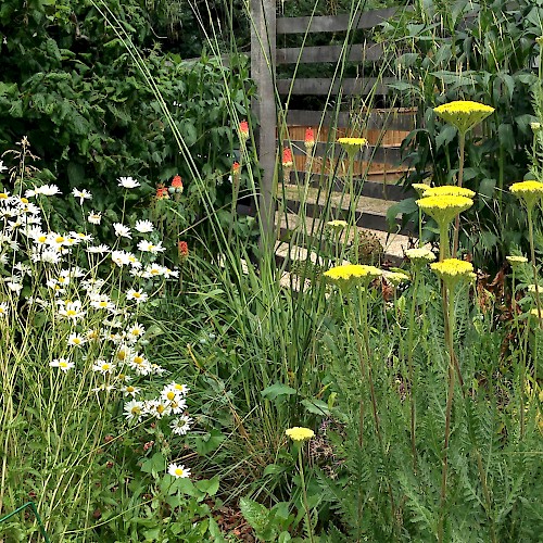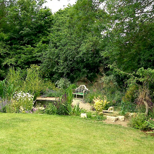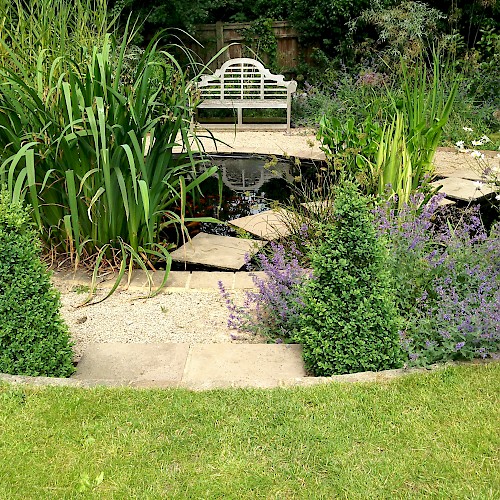 The clients were keen for a dog friendly, low maintenance space, which would entice them into their garden. To start with, we enhanced the planting around the house, to give it a more settled appearance. Then we created a new terrace close to the house, and a pond at the bottom of the garden, to accommodate the client’s fish stock. Additional borders were created to provide seasonal interest.
